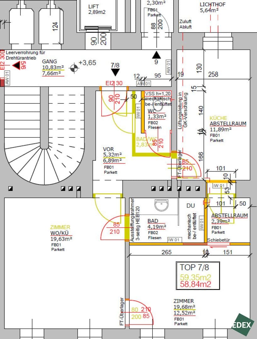 Die großzügige und südseitig ausgerichtete Wohnküche bildet das Herzstück der Wohnung. Das größere Schlafzimmer verfügt über einen Abstellraum, der zum Stauen oder als begehbare Garderobe verwendet werden kann. Das zweite Schlafzimmer ist vom Vorraum aus begehbar und bietet eine angenehme Ruhelage durch die Ausrichtung in einen Lichthof. Das Badezimmer ist mit einer Dusche, sowie einem Waschbecken und einem Waschmaschinen-Anschluss ausgestattet, das WC ist separat begehbar.