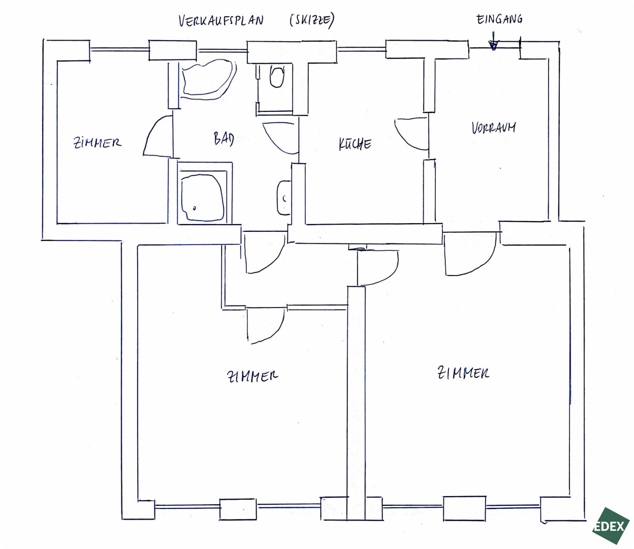 Die Wohnung befindet sich in einem komplett sanierungsbedürftigen Zustand und wird im aktuellen Zustand („wie liegt und steht“) verkauft.