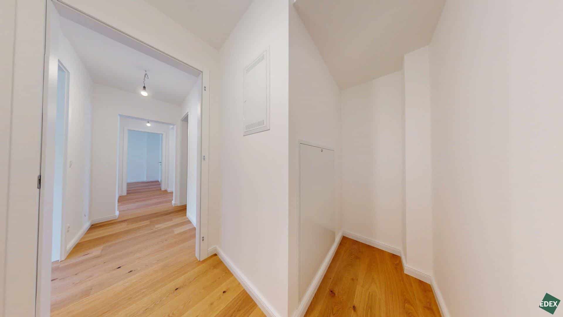 Alle Wohnräume sind mit hochwertigem Eichenparkett ausgestattet, während das Badezimmer mit zeitlos eleganten Fliesen versehen ist. In der gesamten Wohnung sorgt eine Fußbodenheizung für angenehmen Komfort. Zusätzlichen Stauraum bietet ein Kellerabteil. Im Haus stehen zudem ein Kinderwagen- sowie ein Fahrradabstellraum zur Verfügung. Weiters gibt es eine Tiefgarage mit 7 KFZ-Stellplätzen.