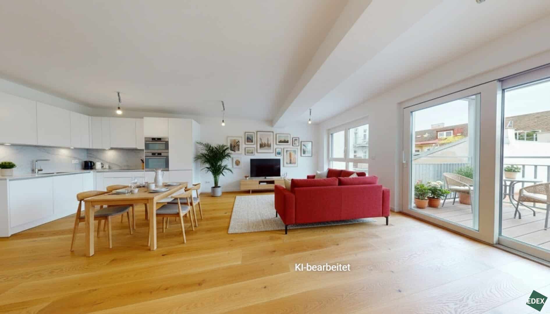 Die dargestellte Möblierung, einschließlich Küche und Begrünung, versteht sich ausschließlich als Gestaltungsvorschlag und ist nicht Bestandteil des Lieferumfangs oder des Vertrages. Die angegebenen Raum- und Wohnungsgrößen sowie Raumhöhen sind Richtwerte und können sich geringfügig ändern. Bauübliche Toleranzen bleiben vorbehalten. Sämtliche Maßangaben sind Circa-Werte und können abweichen. Für die Anfertigung von Einbaumöbeln sind die am Objekt genommenen Naturmaße verbindlich. Änderungen während der Bauausführung – insbesondere aufgrund behördlicher Auflagen sowie haustechnischer oder konstruktiver Erfordernisse – bleiben vorbehalten.