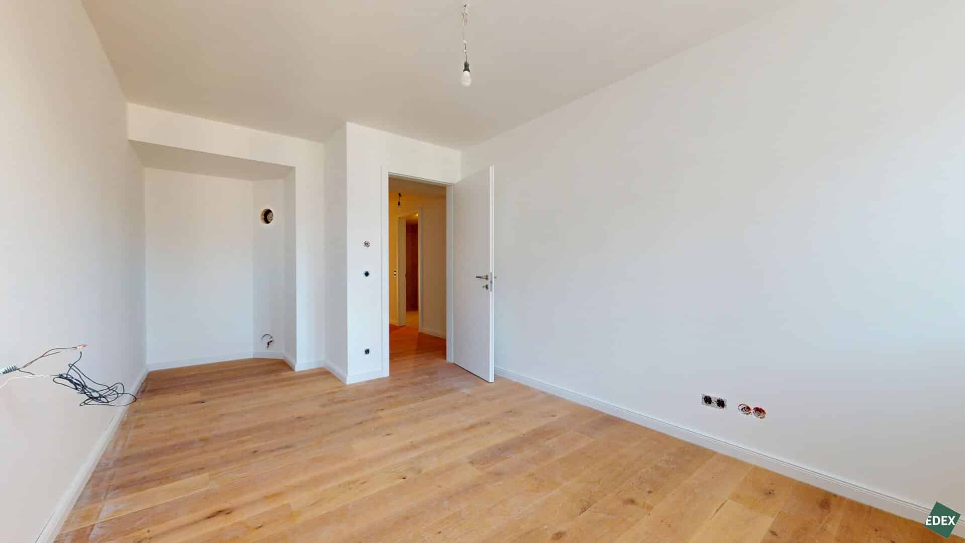 Alle Wohnräume sind mit hochwertigem Eichenparkett ausgestattet, während das Badezimmer mit zeitlos eleganten Fliesen versehen ist. In der gesamten Wohnung sorgt eine Fußbodenheizung für angenehmen Komfort. Zusätzlichen Stauraum bietet ein großzügiges Kellerabteil. Im Haus stehen zudem ein Kinderwagen- sowie ein Fahrradabstellraum zur Verfügung. Weiters gibt es eine Garage mit 7 KFZ-Stellplätzen.