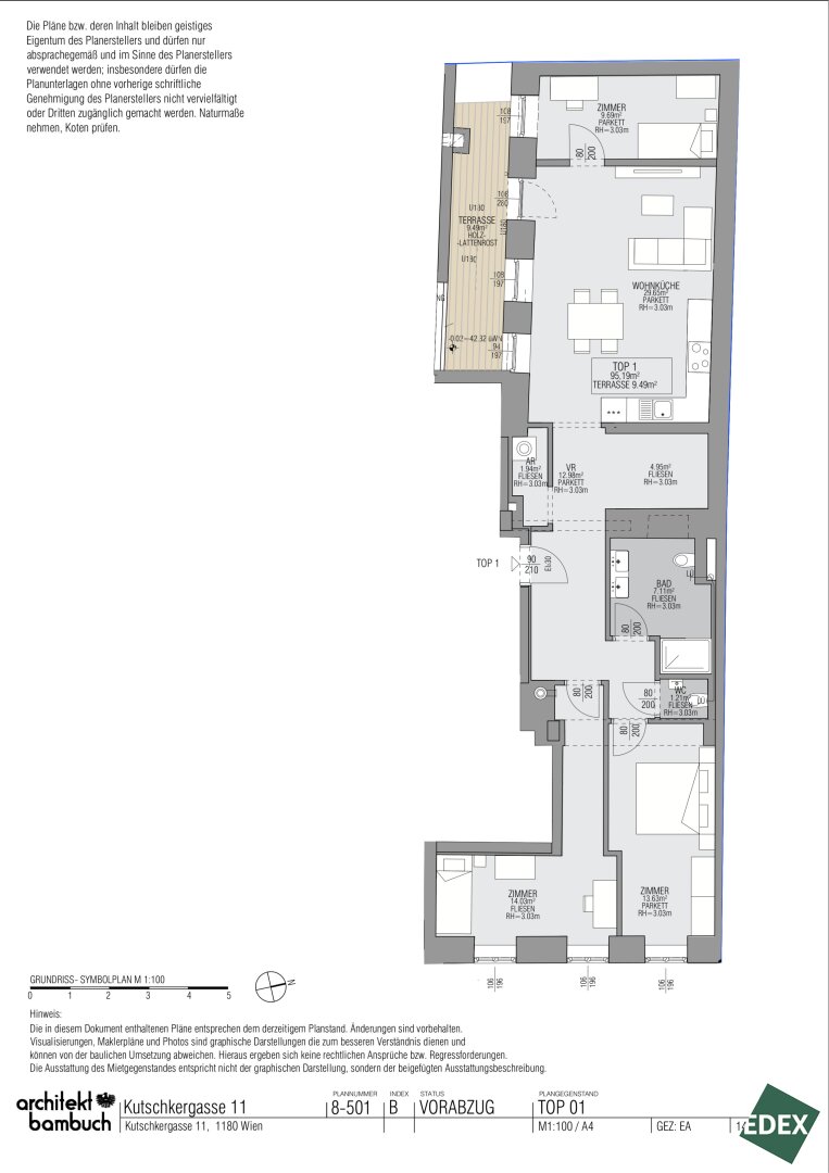 - Top 1 ca. 95,19 m² großer 4-Zimmer-Altbau mit ca. 9,49 m² Terrasse: EUR 690.000,-