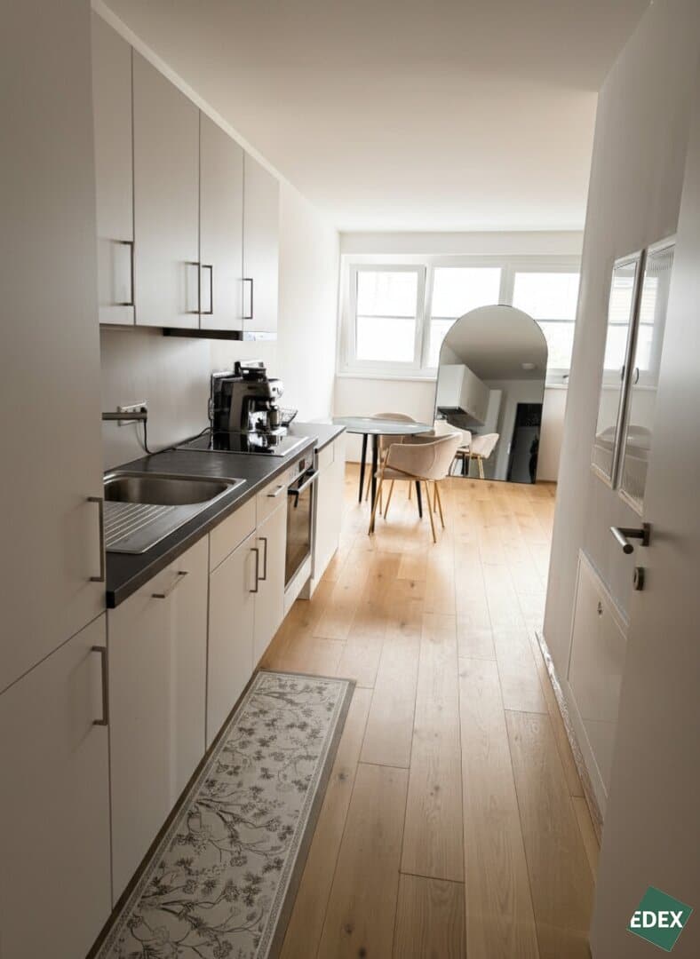 Zur Vermietung gelangt eine schöne 2-Zimmer-Wohnung in urbaner Atmosphäre. Die lichtdurchflutete Wohnung liegt straßenseitig im 2.Dachgeschoß und verfügt über einen Vorraum, ein modernes Badezimmer, einen separaten Bereich mit Waschmaschinenanschluss, ein separates WC, eine Wohnküche mit einer modernen, offenen Küche, ein Schlafzimmer, sowie eine Balkon. Der Außenbereich ist über das Wohnzimmer begehbar. Die Fenster sind mit einem außenliegenden Sonnenschutz versehen. Die Wohnräume sind mit hochwertigen Parkettböden und die Nassräume sind mit eleganten Fliesen ausgestattet. Im Haus befinden sich Kinderwagen- und Fahrradabstellräume, Paketboxen sowie eine Tiefgarage. Die Wohnungen stehen ab sofort zur Verfügung und werden auf 5 Jahre befristet vermietet.