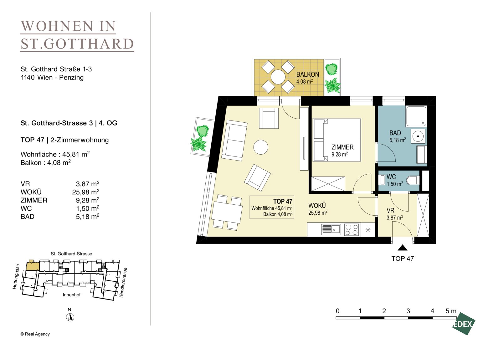WOHNEN IN ST. GOTTHARD – In dem modernen Wohnbauprojekt in der Sankt-Gotthard-Straße, welches im März 2024 fertiggestellt wurde, befinden sich insgesamt 118 exquisit ausgestattete Wohnungen.