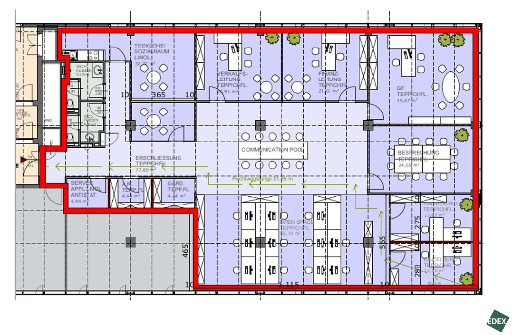 Die Flächen können beliebig auf die Wünsche des Mieters angepasst werden.