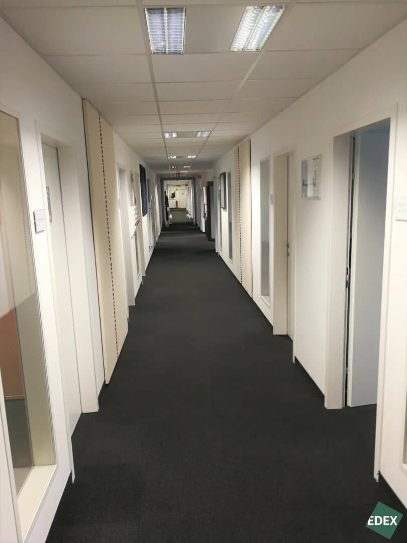 Das Objekt erstreckt sich über drei Etagen, besitzt einen effizienten Grundriss und eine hochwertige Ausstattung. Im ersten und zweiten Obergeschoß befinden sich Büroflächen, ein Empfangsbereich, Sanitäranlagen, Besprechungszimmer, sowie Serverräume und Küchen. Im EG stehen großzügige Lagermöglichkeiten zur Verfügung, die teilweise auch in Besprechungs- und Sozialräume umgebaut wurden.