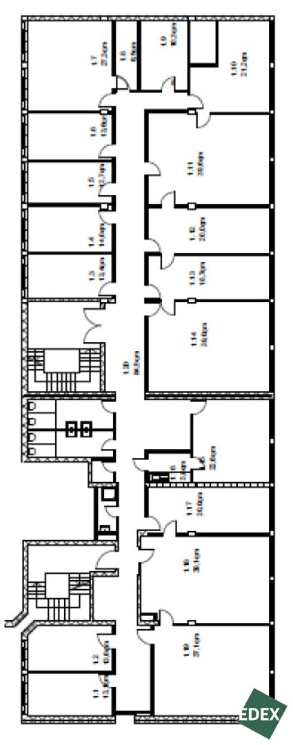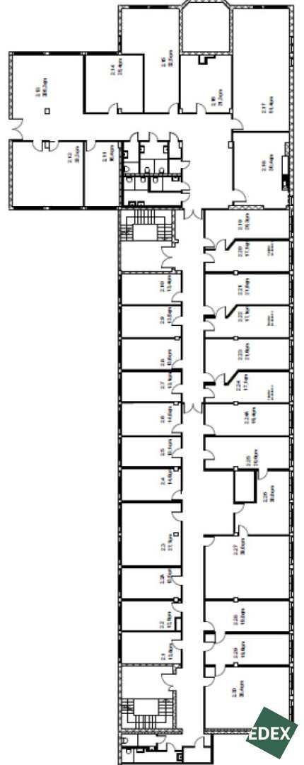 Die Büroflächen liegen teilweise übereinander, verfügen über mehrere Stiegenhäuser und sind über diese miteinander verbunden. Die Raumhöhe in den Büroräumen beträgt drei Meter. In den Gängen ist die Raumhöhe durch eine abgehängte Decke etwas niedriger.