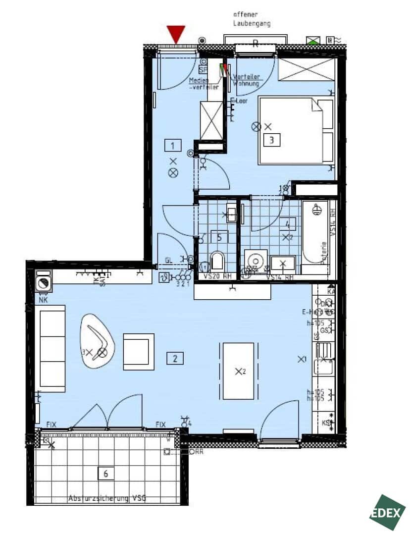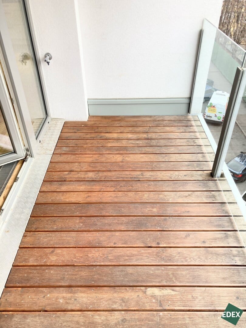 Die ca. 63 m² große 2-Zimmer-Wohnung befindet sich im 4. Stockwerk (mit Lift) eines gepflegten Neubaus im 21. Wiener Gemeindebezirks. Die Wohnung verfügt über einen großen Vorraum, eine separate WC-Einheit, ein Badezimmer mit Badewanne und Waschmaschinen-Anschluss, ein Schlafzimmer (inkl. Außenbeschattung), sowie über ein geräumiges Wohnzimmer mit Wohnküche (inkl. Geräte) mit Zugang zur ca. 7 m² großen Loggia. Ein Kellerabteil sorgt für zusätzlichen Stauraum. Die Wohnräume sind mit Parkett und die Nassräume mit Fliesen ausgestattet. Im Schlafzimmer gibt es ein außenliegendes Rollo. Geheizt wird mittels Fernwärme.