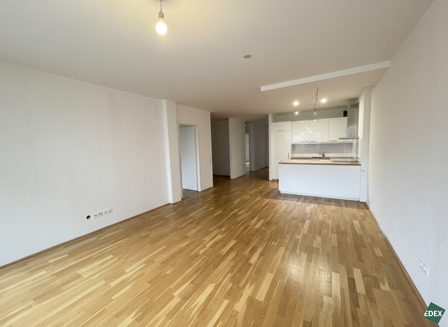 Der großzügige Wohn-/Essbereich mit offener Küche (Backofen mit Kochfeld, Kühlschrank, Geschirrspüler) bildet das Herzstück der Wohnung und überzeugt durch seine Helligkeit sowie die gute Raumaufteilung.