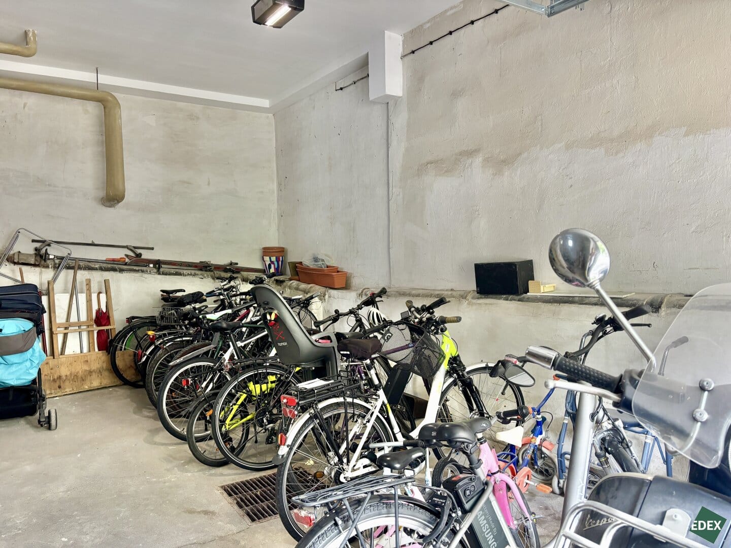 Zwei zugeordnete Kellerabteile bieten zusätzlichen Stauraum. Im Haus befinden sich zwei Garagenplätze: Einer dient als Fahrradabstellraum, der zweite wird unter den Wohnungseigentümern zur Vermietung verlost.