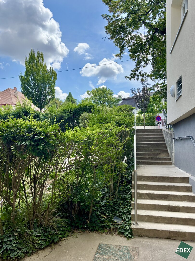 In begehrter Lage im Herzen Grinzings, an der Himmelstraße / Ecke Straßergasse im 19. Wiener Gemeindebezirk, gelangt eine rund 135 m² große Dachgeschosswohnung in einem gepflegten Neubau zum Verkauf. Das Gebäude wurde 2025 umfassend thermisch saniert – Dach, Fassade und Fenster wurden erneuert; das dafür aufgenommene Darlehen ist bereits getilgt. Der Zugang zum Haus erfolgt sowohl von der Himmelstraße als auch von der Straßergasse über wenige Stufen. Die Liegenschaft liegt idyllisch eingebettet in einer Grünanlage mit altem Baumbestand.