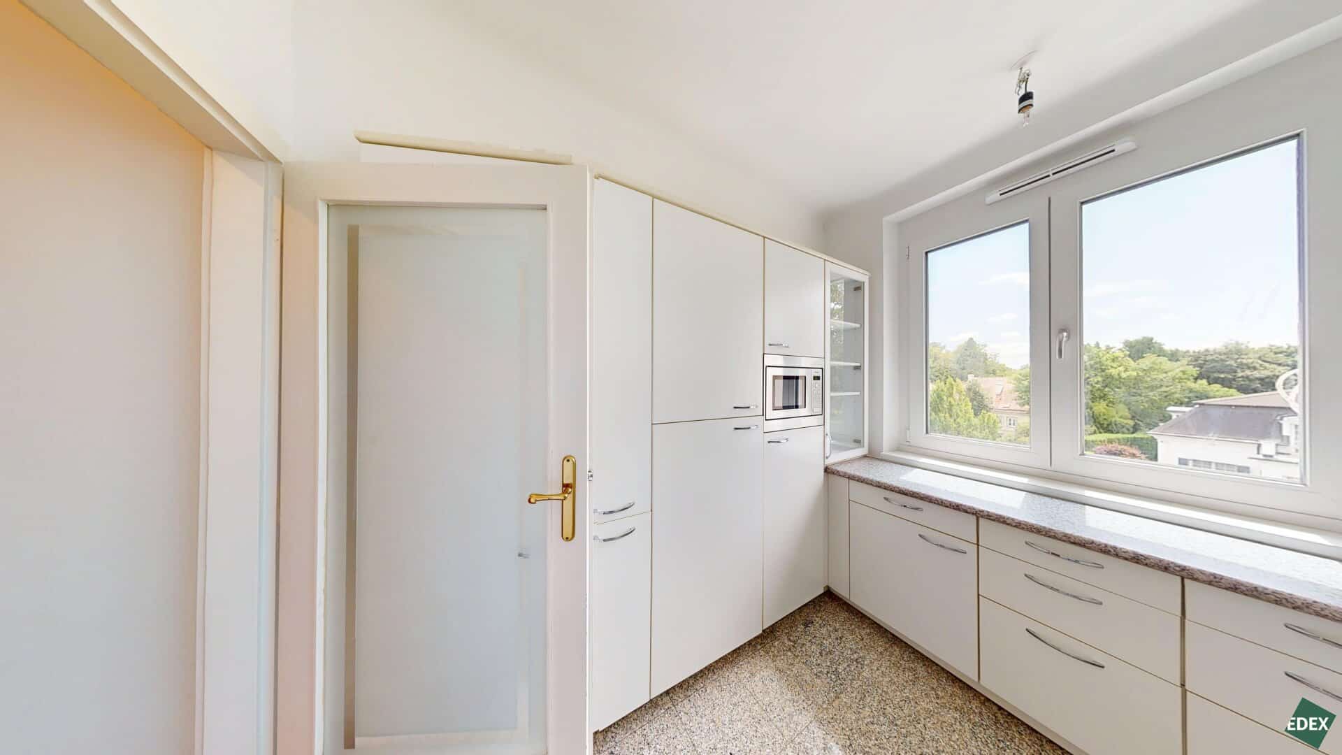Die Wohnung befindet sich im letzten Liftstock, ist südöstlich ausgerichtet und besteht aus zwei zusammengelegten Einheiten – inklusive zweier separater Eingänge. Eine spätere Teilung in zwei eigenständige Wohnungen ist möglich.