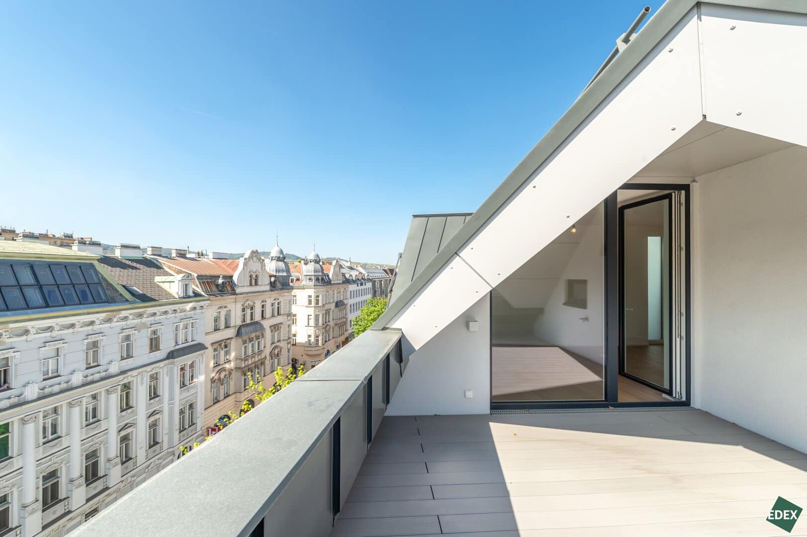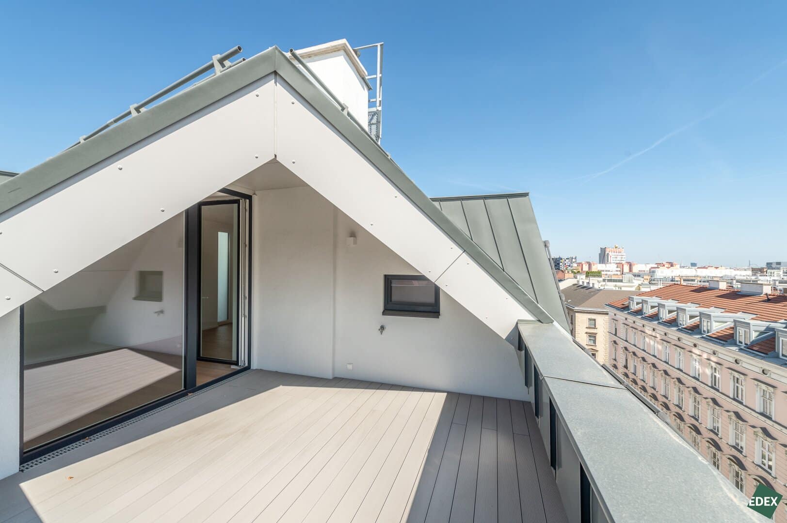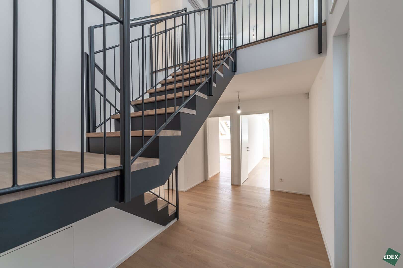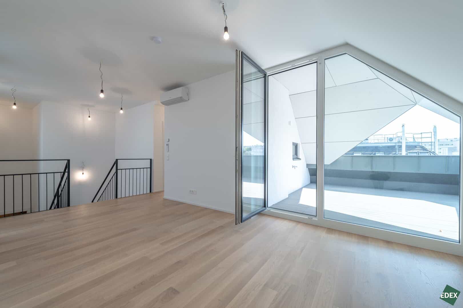 Besonders elegant ist die weitläufige Galerie mit dem direkten Terrassenzugang. Von dort aus hat man einen tollen Rundumblick – vom Wiener Riesenrad bis hin zum Khalenberg.