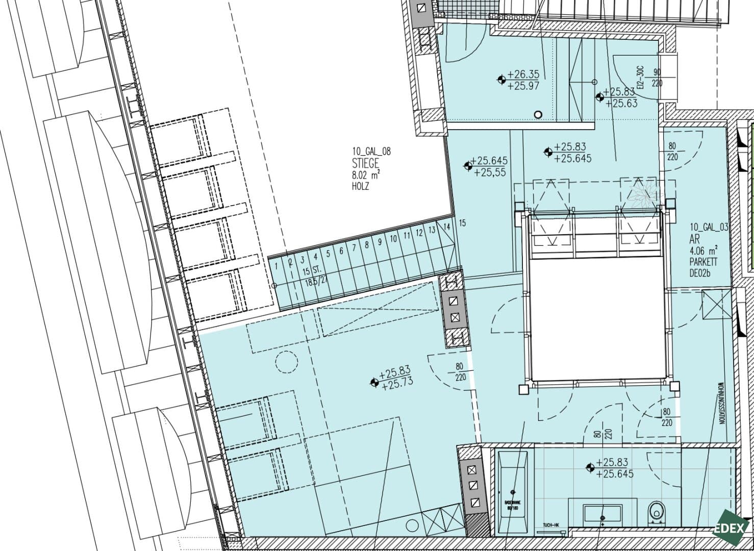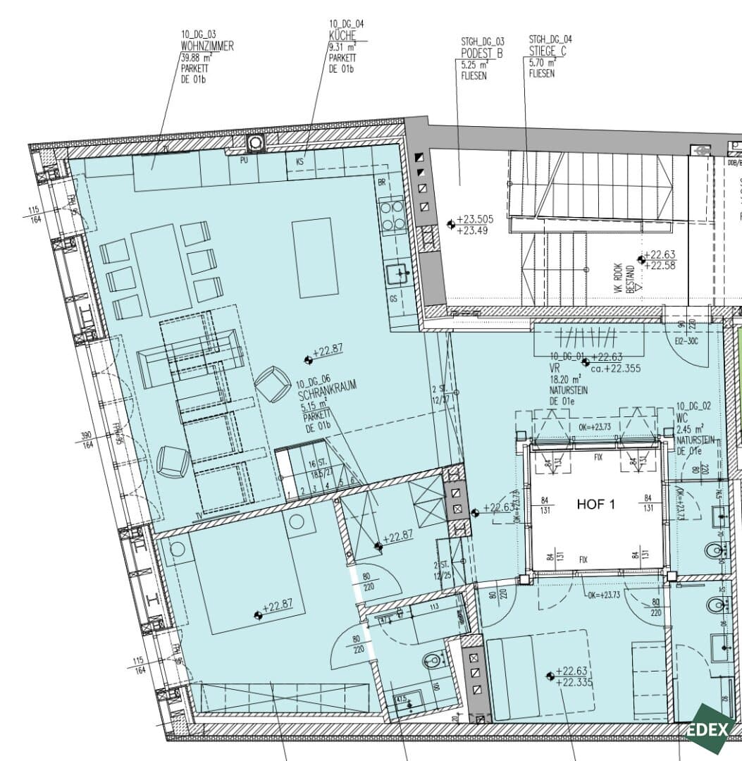 The absolute highlight of the apartment is the ca. 50 m² rooftop terrace enabling a view on the city and the Stephansdom. The 360-degree view gives a majestic look on the city. The installation of a jacuzzi is possible. Even though the flat lies in the city center, the design of terrace makes it almost completely private.