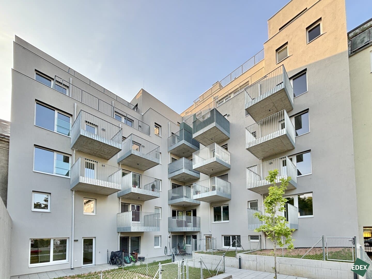 Alle 44 Eigentumswohnungen verfügen über äußerst effiziente Grundrisse sowie teilweise über Balkon, Terrasse oder Eigengarten, die Nutzflächen der Wohnungen liegen zwischen 32 m² und 91 m². Moderne, elegante Bäder und hochwertige Parkettböden schaffen eine zeitgemäße Wohnatmosphäre. Eine Wärmepumpe sowie eine Photovoltaik-Anlage mit einer Leistung von mindestens ca. 3,46 kWp sorgen für eine umweltschonende Energieversorgung. Durch Einsatz eines Smart-Home-Systems, können Haustüren über das Smartphone aufgesperrt oder Informationen zum Gebäude von unterwegs abgerufen werden. In der Garage stehen 21 Garagenplätze zur Verfügung, E-Ladestationen können nachgerüstet werden.