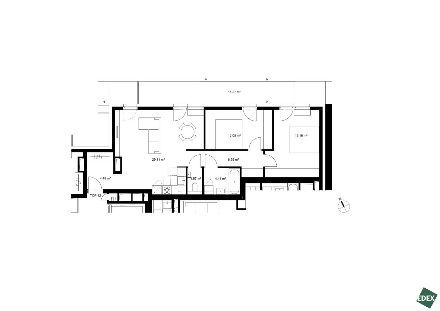 - TOP 42: ca. 73,36 m² 3-Zimmer-Wohnung mit 15,27 m² Terrasse