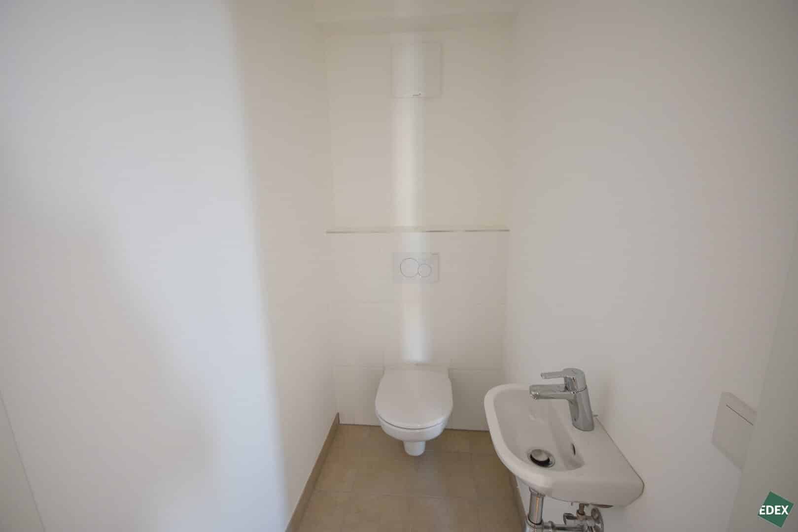 Die Wohnräume präsentieren sich mit schönem Parkett, während das Badezimmer mit zeitlos elegantem Feinsteinzeug ausgestattet ist. Die Beheizung erfolgt durch eine effiziente Zentralheizung in Verbindung mit einer Fußbodenheizung. Dreifach verglaste Fenster sorgen für optimale Isolierung. Ein zusätzliches Kellerabteil bietet praktischen Stauraum, im Haus befindet sich ein Abstellraum für Kinderwagen und Fahrräder.