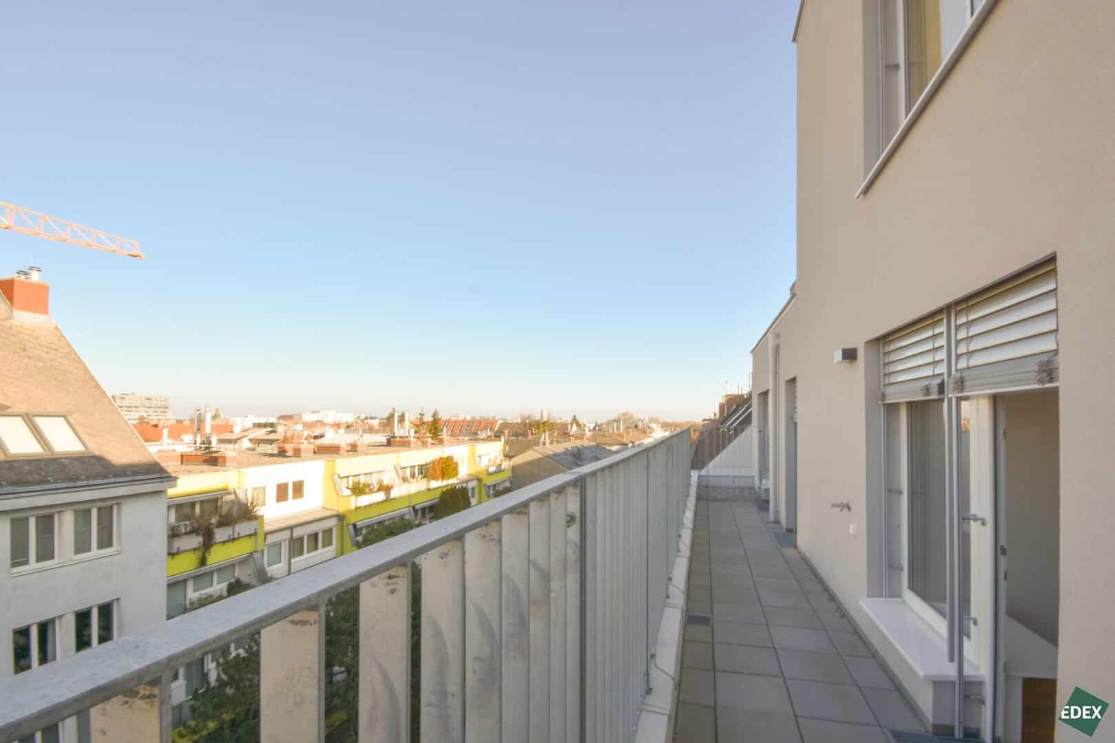 Diese 3-Zimmer-Wohnung im 5. Stock/1 DG mit ca. 73,36 m² verfügt über einen Vorraum, ein Wohnzimmer mit Anschlüssen für eine Wohnküche, 2 Schlafzimmer, ein Bad mit Badewanne und Waschmaschinenanschluss sowie ein separates WC. Highlight ist die ca. 15,27 m² große Terrasse, die vom Wohnraum und von beiden Schlafräumen begehbar ist.