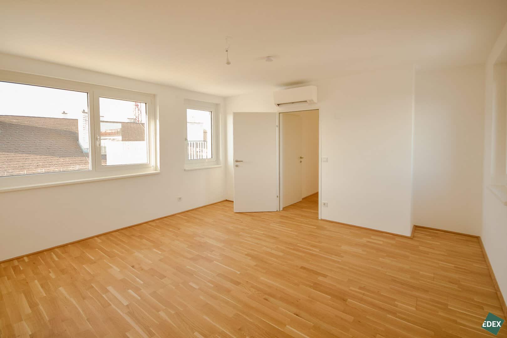 Diese 3-Zimmer-Wohnung im 5. Stock/1 DG mit ca. 81,84 m² verfügt über einen Vorraum, ein Wohnzimmer mit Anschlüssen für eine räumlich abgetrennte Wohnküche, 2 Schlafzimmer, ein Bad mit Badewanne, einen Abstellraum mit Waschmaschinenanschluss sowie ein separates WC. Das Highlight dieser Wohnung sind die 2 Terrassen, eine vom Wohnzimmer und Schlafzimmer 1 begehbar mit ca. 25,02 m² große Terrasse, die andere von Schlafzimmer 2 begehbar mit ca. 14,13 m².