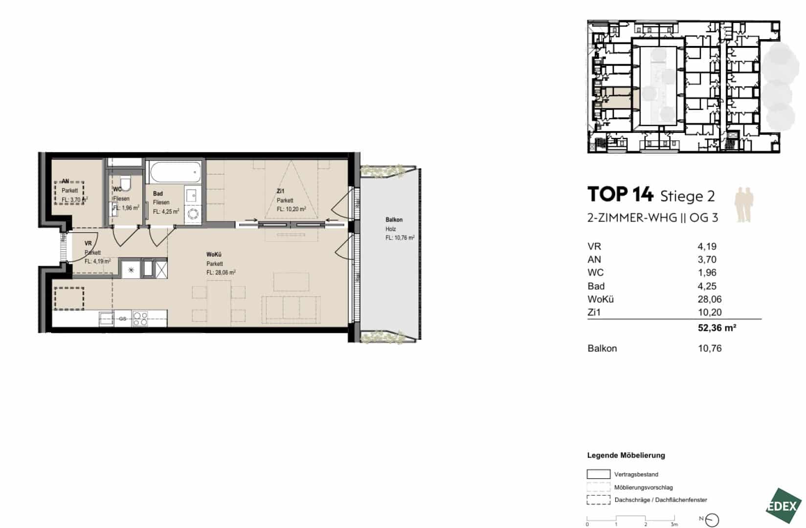 - Jede Wohnung verfügt über eine Freifläche (Balkon, Loggia oder Terrasse)