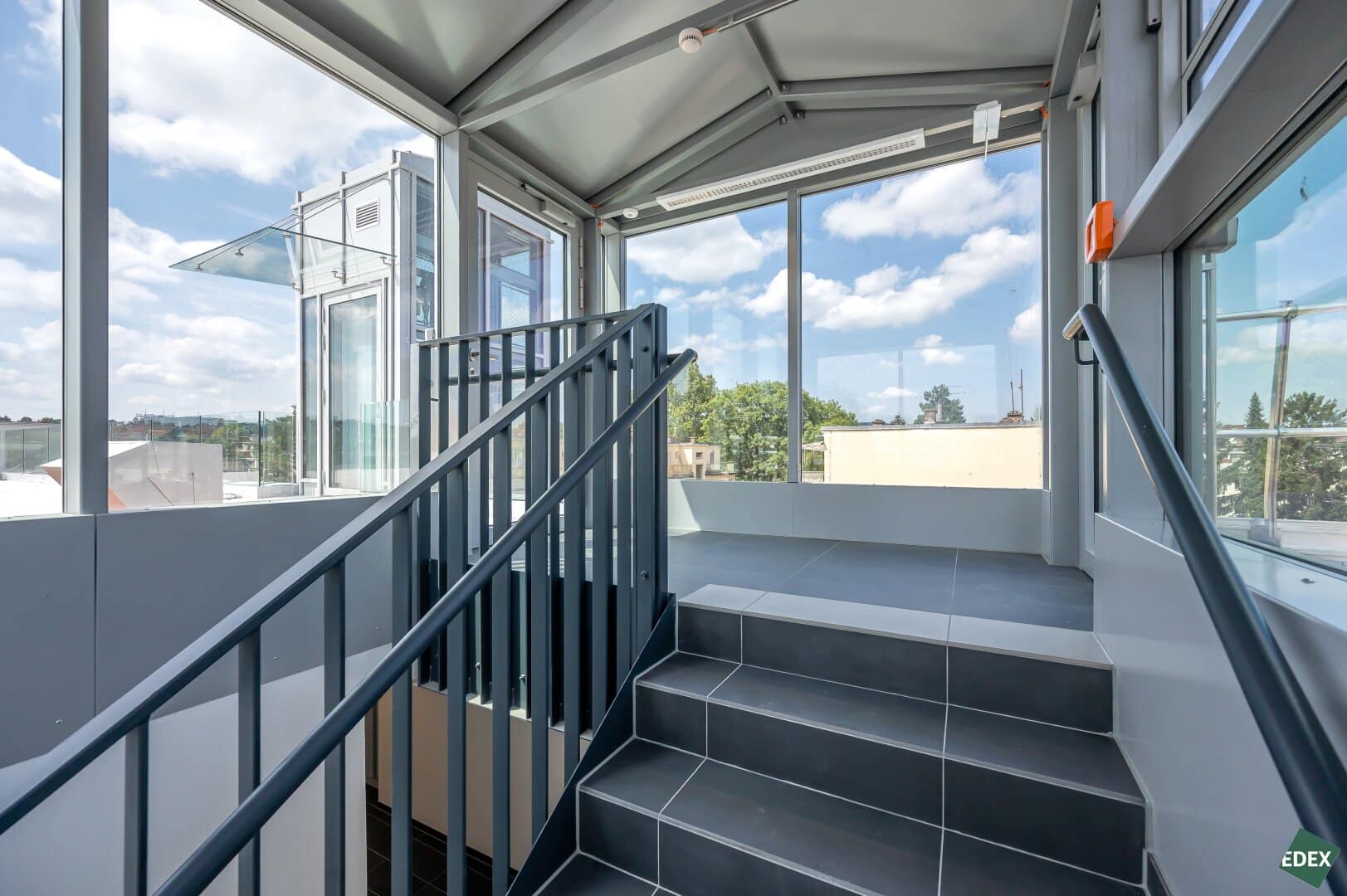 Die Büroeinheiten sind sowohl über die Einkaufspassage im Erdgeschoß am Hauptplatz des EKAZENT als auch über die hauseigene Tiefgarage zugänglich. Von dort aus führen ein Personenaufzug und ein Stiegenhaus in die oberen Stockwerke. Auch die Dachterrasse im 4. Stock ist bequem mit dem Lift erreichbar.