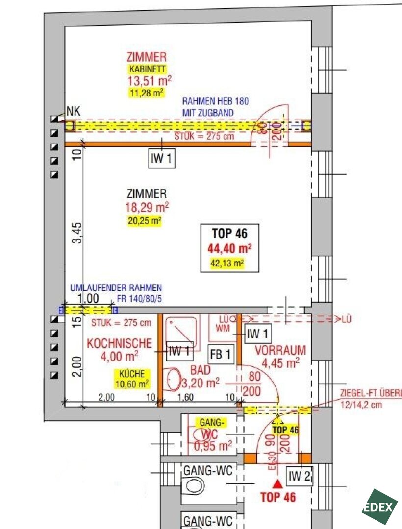 TOP 36-37: ca. 43,96 m² 2-Zimmer-Wohnung, Preis : EUR 149.000,- (unsaniert)