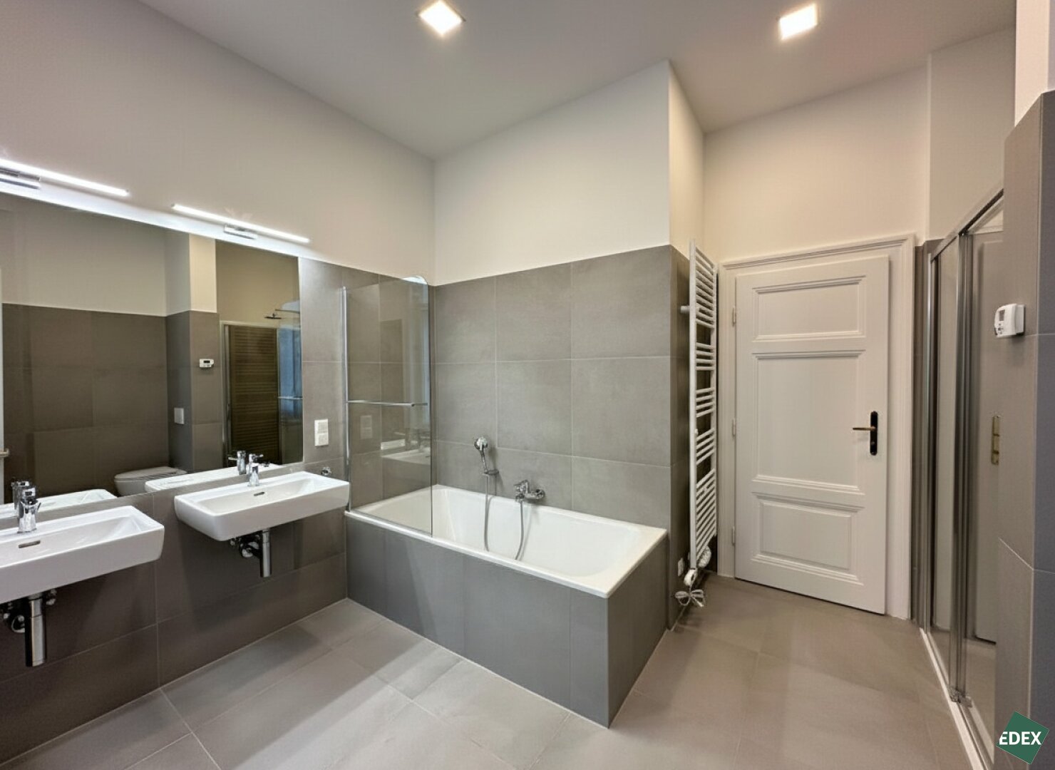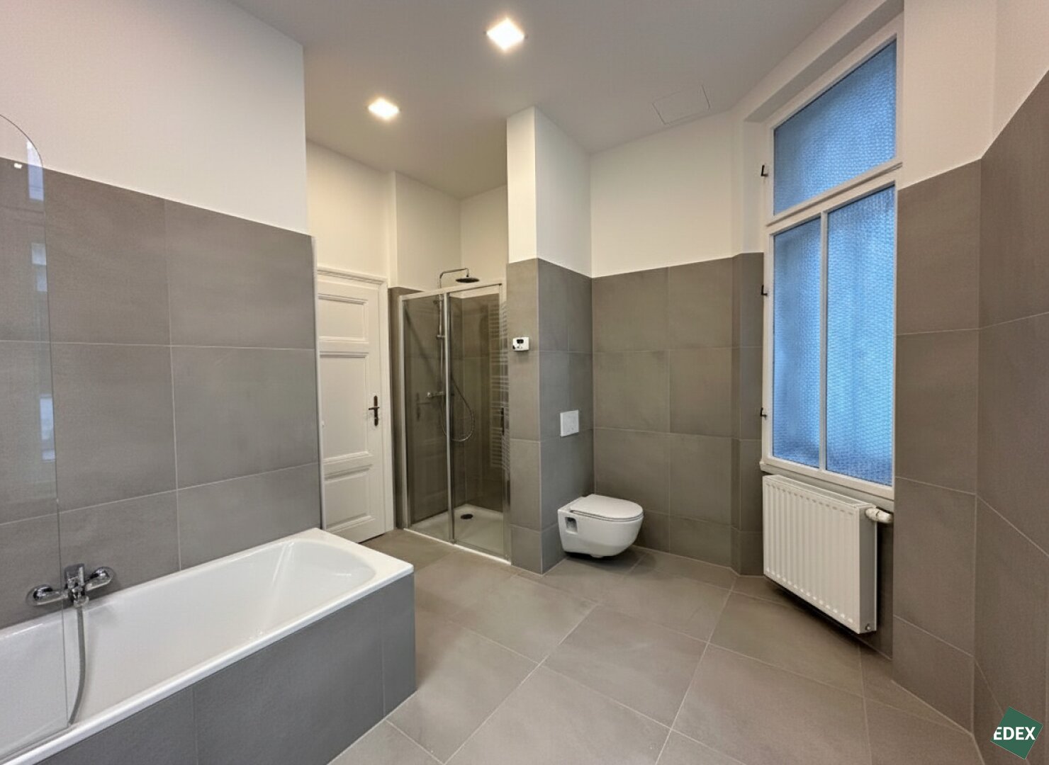 - Badezimmer mit Badewanne, Dusche und Toilette