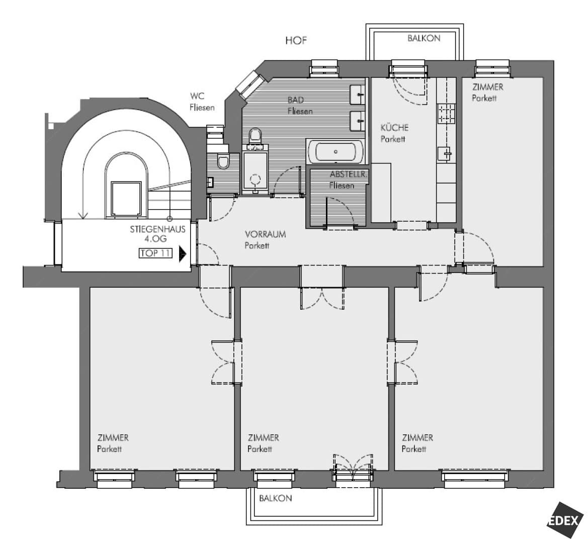 Die Wohn- bzw. Schlafräume sind mit hochwertigen Fischgrät-Parkettböden und die Nassräume mit modernen Fließen ausgestattet.