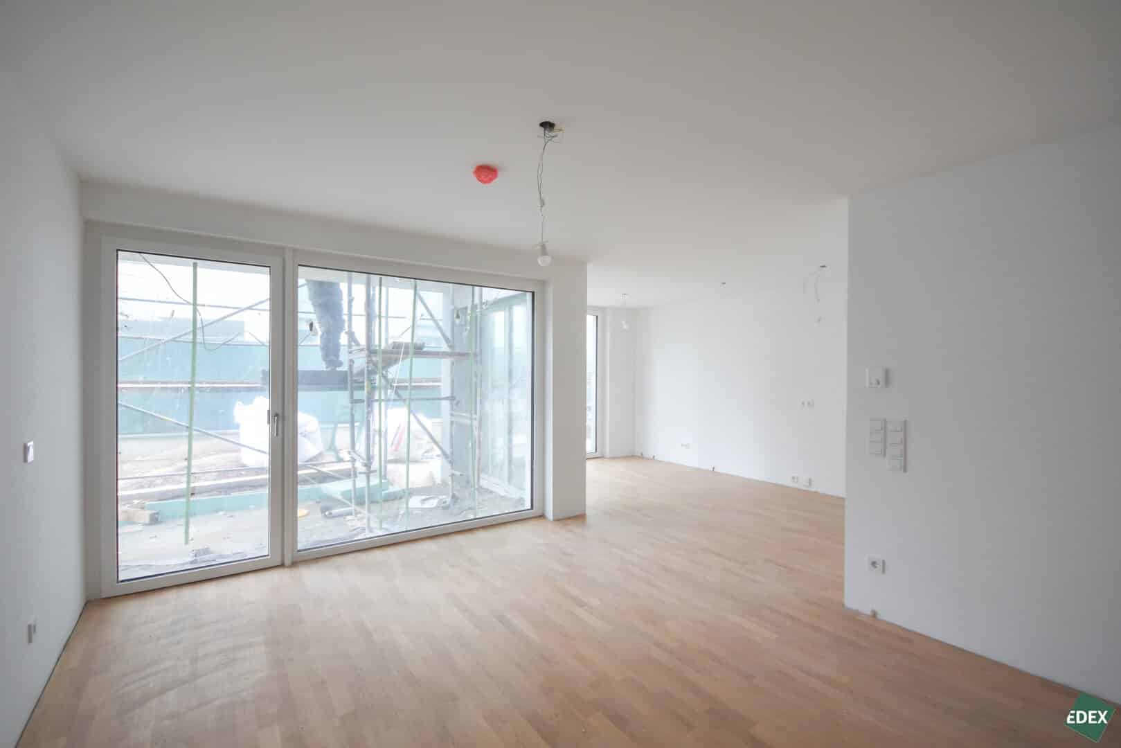 Die Wohnungen mit einer Größe von ca. 48 m² bis 137 m² verfügen über ein bis drei Zimmer und bieten großzügige Grundrisse mit durchdachter Raumaufteilung. Beinahe jede Einheit verfügt über eine Freifläche in Form von Balkon, Terrasse oder Garten – für mehr Licht, Luft und Lebensqualität. Die intelligente Raumnutzung vermittelt selbst bei kleineren Flächen Großzügigkeit. Der zentrale Wohnbereich mit offener Küche (ausgestattet mit modernen SIEMENS-Geräten) schafft einen harmonischen Mittelpunkt für entspanntes Wohnen.