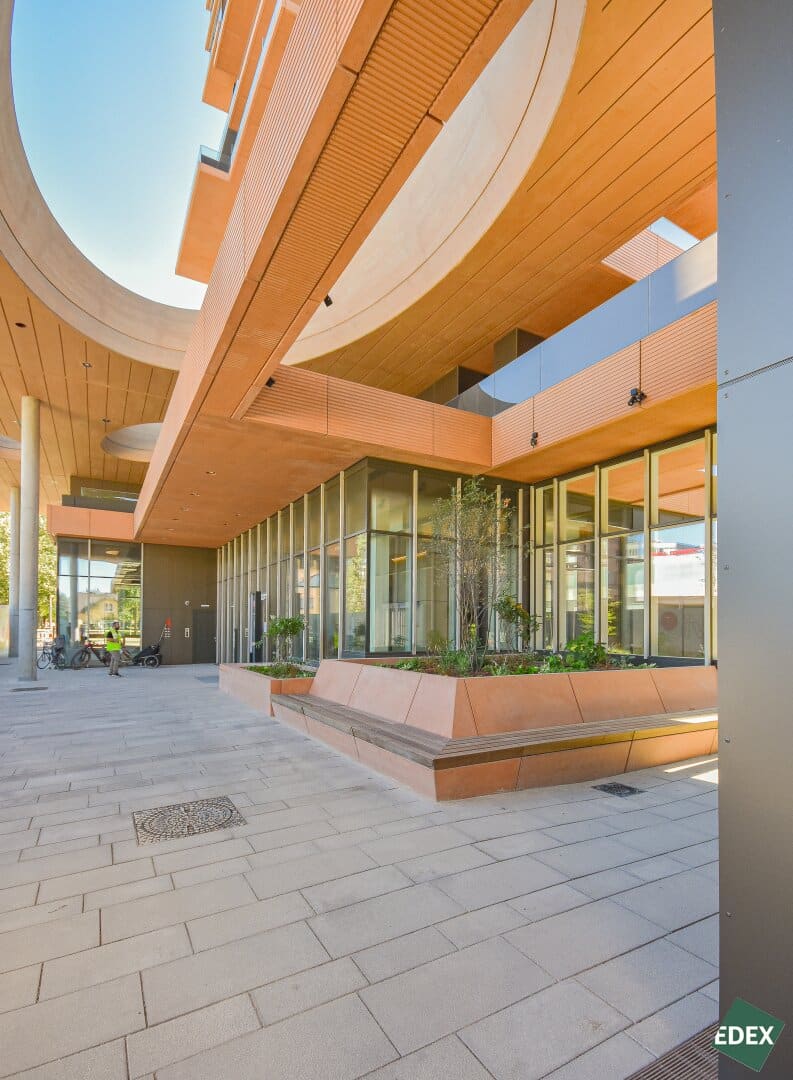 In dem Wohnturm befindet sich ein Rooftop Infinity-Pool mit Liegemöglichkeiten zum entspannen, ein Sonnendeck, eine Sauna mit bezauberndem Ausblick, ein Fitnessstudio in der obersten Etage, Kinderwagen- und Fahrradräume, Paketboxen, multifunktionale Gemeinschaftsräume (Eventküche, Party & Barbecue Lounge) ein Kinderspielplatz, ein Jugendspielraum, ein repräsentatives Foyer mit Concierge-Service, sowie attraktive Außenanlagen mit parkähnlichen Freiflächen, Gastronomie, Shops und Lebensmittelhandel, sowie zugängliche Flächen für Urban Gardening.