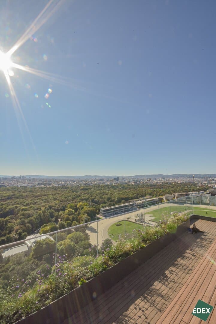 GRÜNBLICK: Wohnen der absoluten Extraklasse. Neben dem faszinierenden Fernblick verfügen die Wohnungen über eine exklusive und smarte Ausstattung. Zwischen dem modernen Stadtzentrum von Wien und dem weitläufigen Erholungsgebiet Grüner Prater, steht das imposante und weithin erkennbare Hochhaus im 2. Wiener Bezirk – Grünblick im Viertel Zwei. Das Hochhaus bietet ein intelligentes Gesamtkonzept in bester Wohnlage Wiens, nur 10 Auto-Minuten von der Innenstadt entfernt stellt das Projekt durch seine innerstädtische Lage im 2. Wiener Gemeindebezirk eine optimale Verbindung zum Stadtzentrum und zum Flughafen her. Ein direkter Zugang zum Prater, U-Bahn-Station in nächster Nähe und eine umfassende Infrastruktur, sowie unmittelbare Nähe zum Stadion Center zeichnen den Grünblick als einzigartigen Standort in Wien aus.