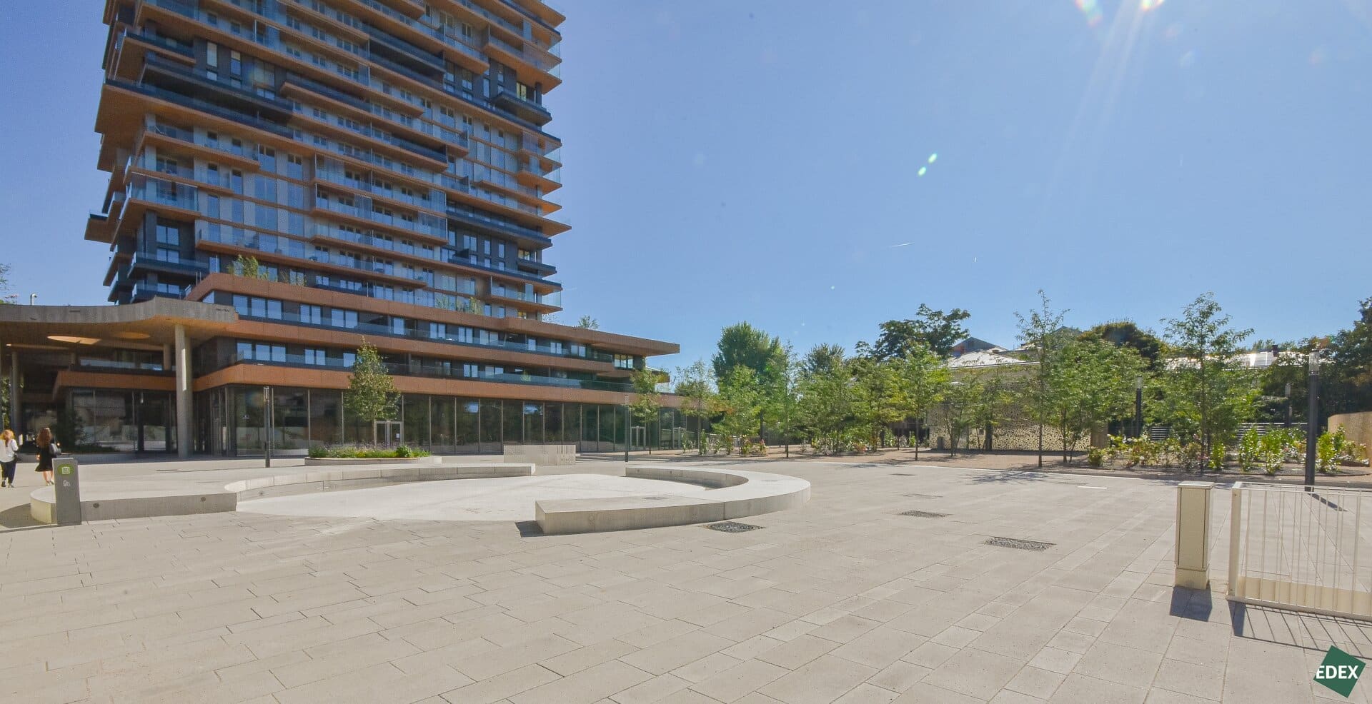 In dem Wohnturm befindet sich ein Rooftop Infinity-Pool mit Liegemöglichkeiten zum entspannen, ein Sonnendeck, eine Sauna mit bezauberndem Ausblick, ein Fitnessstudio in der obersten Etage, Kinderwagen- und Fahrradräume, Paketboxen, multifunktionale Gemeinschaftsräume (Eventküche, Party & Barbecue Lounge) ein Kinderspielplatz, ein Jugendspielraum, ein repräsentatives Foyer mit Concierge-Service, sowie attraktive Außenanlagen mit parkähnlichen Freiflächen, Gastronomie, Shops und Lebensmittelhandel, sowie zugängliche Flächen für Urban Gardening.