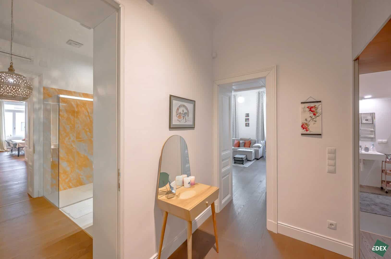 The apartment is situated in one of the most sought-after residential areas of Vienna’s 3rd district, just a few meters from the Belvedere Palace Gardens.