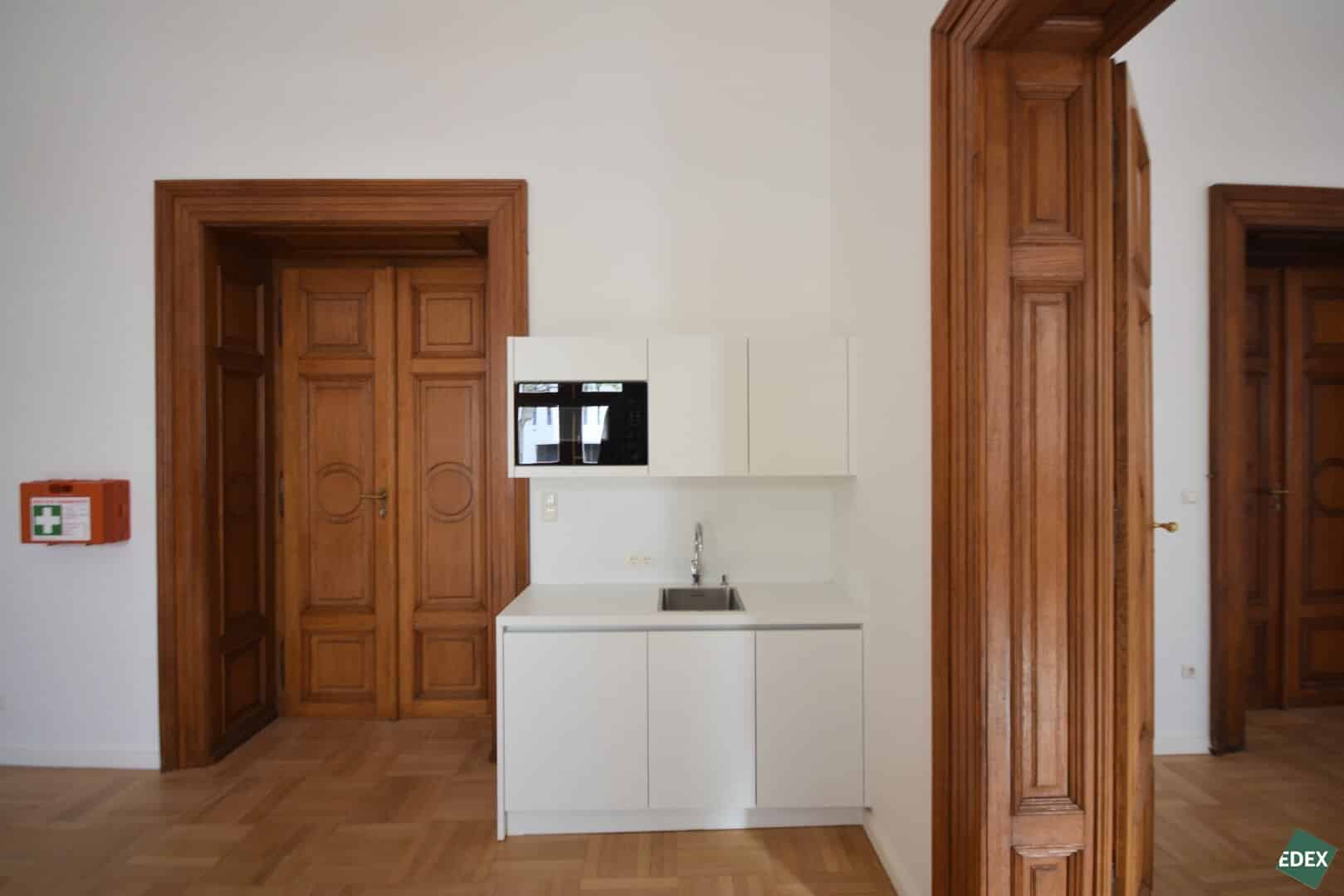 Das aufwendig sanierte Gebäude bietet eine Arbeitsatmosphäre der Extraklasse. Die angebotenen Flächen verfügen über eine hochwertige Ausstattung, sowohl im Altbau als auch im Neubau des Hauses. Das historische Ambiente und die Geschichte des Gebäudes kommt dabei nicht zu kurz und wird durch die prachtvollen Foyers unterstrichen. Die exponierte Lage ermöglicht einen optimalen Geschäftsauftritt.