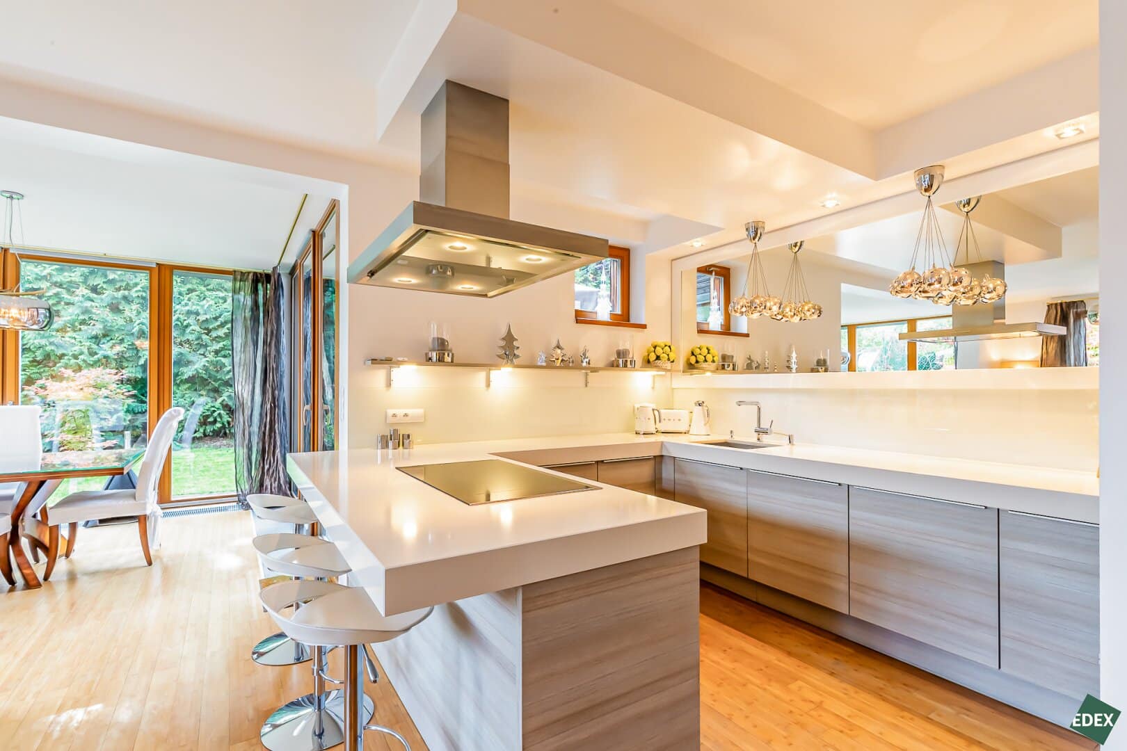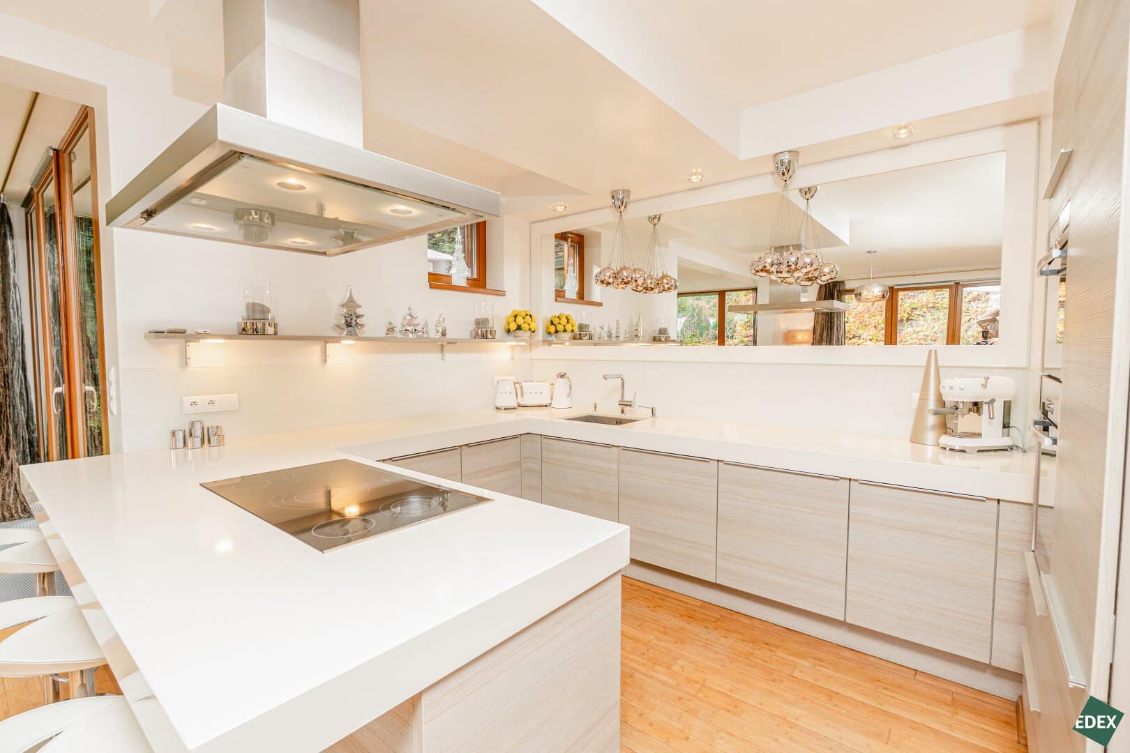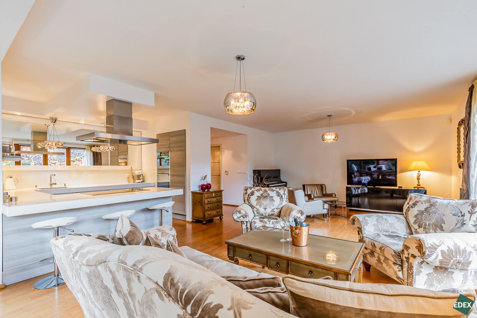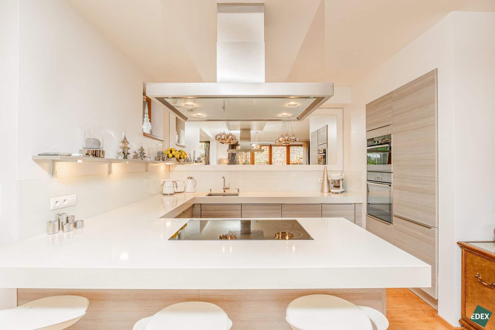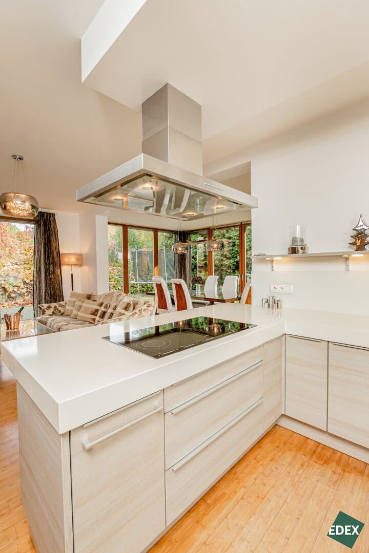 Zur Wohnfläche gehört eine Designerküche der Marke Poggenpohl, ausgestattet mit allen hochwertigen Einbaugeräten.