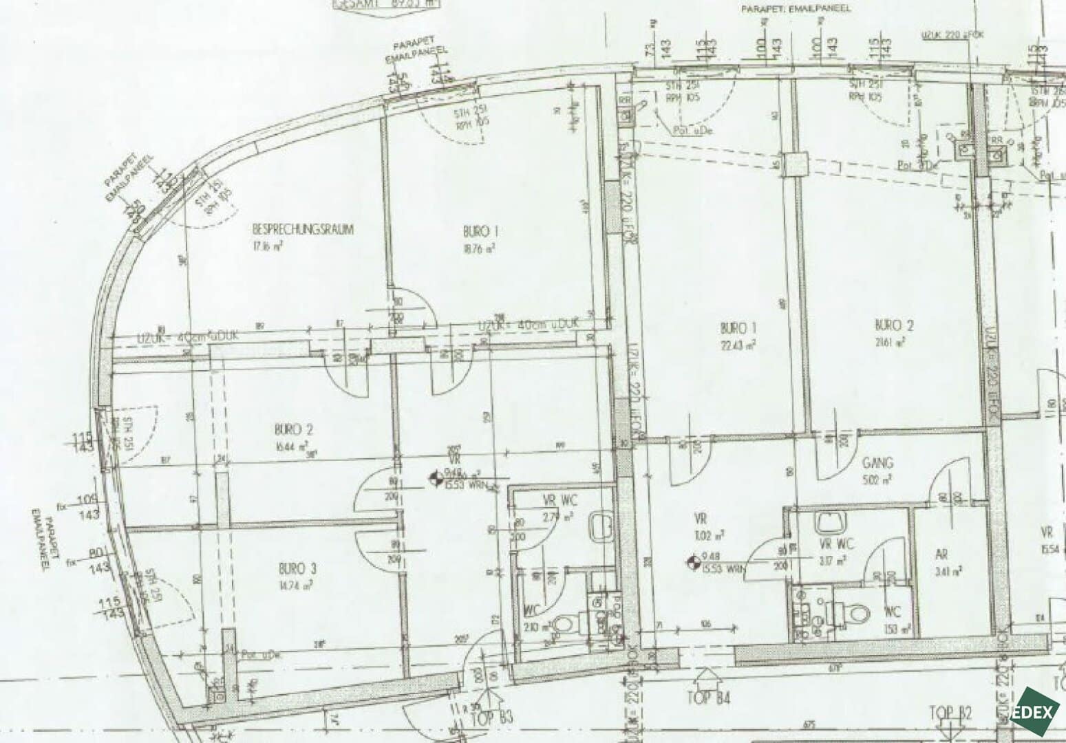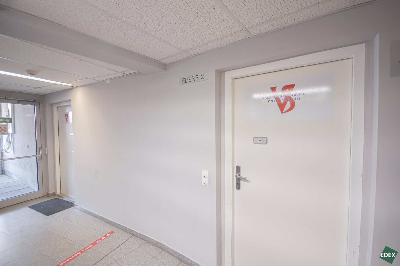 Sie enthält derzeit fünf Büroräume und einen Besprechungsraum sowie einen Vorraum, einen Abstellraum und zwei separate WCs.