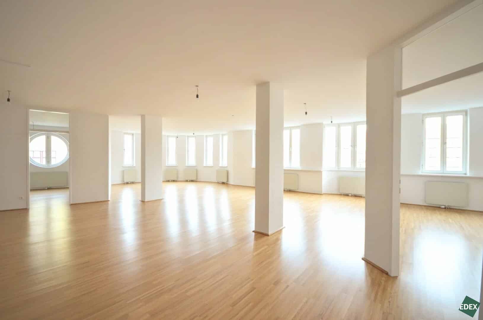 Das Büro befindet sich im zweiten Liftstock (nicht barrierefrei) und verfügt über insgesamt 4 Zimmer, eine Teeküche, einen Abstellraum, ein Archiv (gekühlt) sowie getrennte WC Einheiten. Der große Hauptraum eignet sich optimal als Open Space und ermöglicht ein kommunikatives Arbeitsklima.