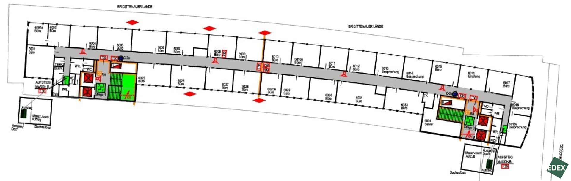 An der Brigittenauer Lände im 20. Wiener Gemeindebezirk, unweit des Augartens, gelangt ab sofort dieses gut angebundene Büro zur Vermietung. Die Fläche befindet sich im 6. Obergeschoss und verfügt über einen effizienten Grundriss mit mehreren Büroräumen in unterschiedlichen Größen, mehreren Teeküchen, Besprechungsräumen sowie getrennten WC-Einheiten. Das Layout kann an die Wünsche des Mieters angepasst werden. Die Versorgungswege können als Social Area, Abstellraum und Copy Area genutzt werden. Der Donaukanal sowie die begrünte Umgebung bieten ein schönes Arbeitsumfeld.
