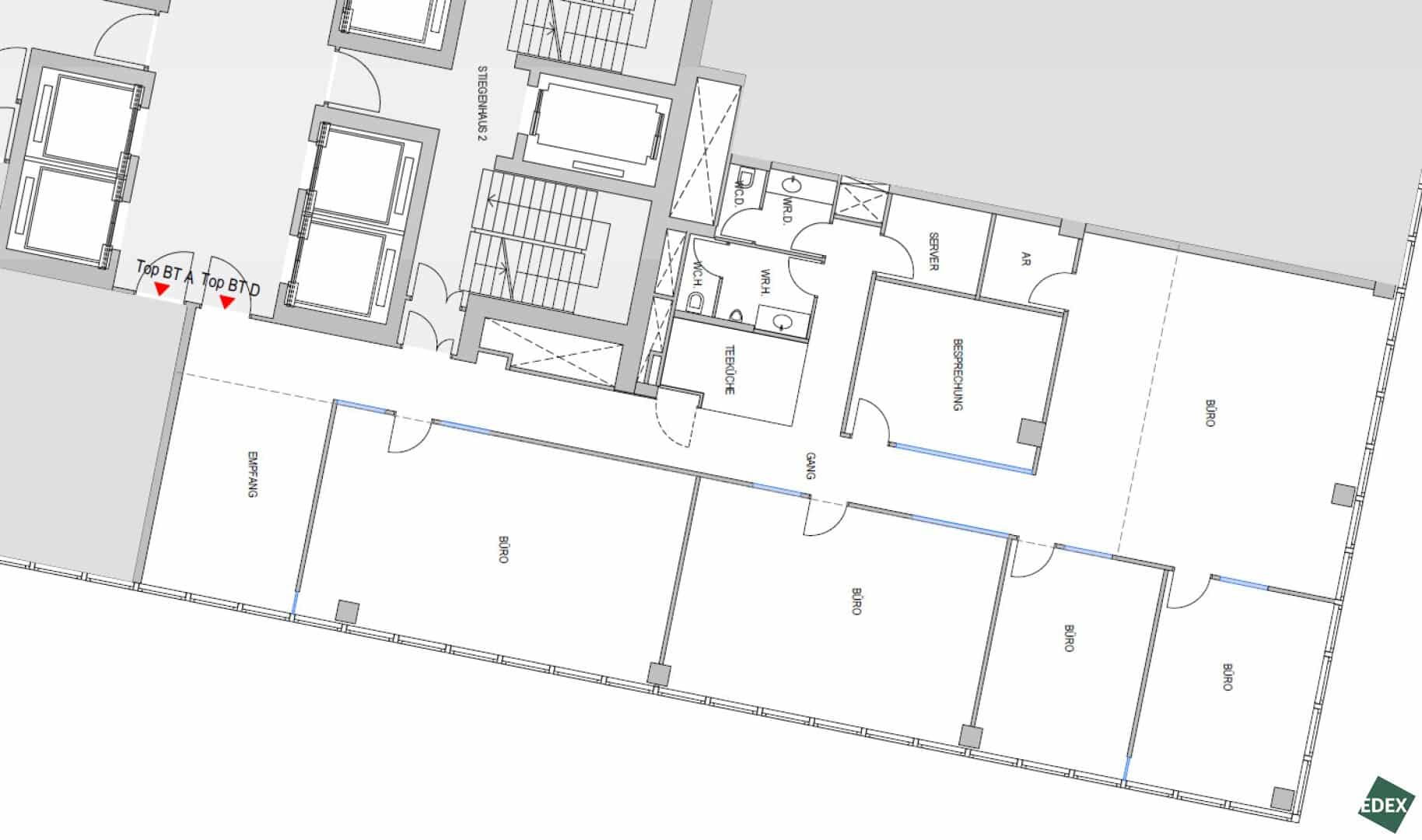 Die Flächen sind flexibel und nach individuellen Bedürfnissen gestaltbar. Neben Großraumbüros sind auch kleinste Einheiten für Einzelbüros möglich.