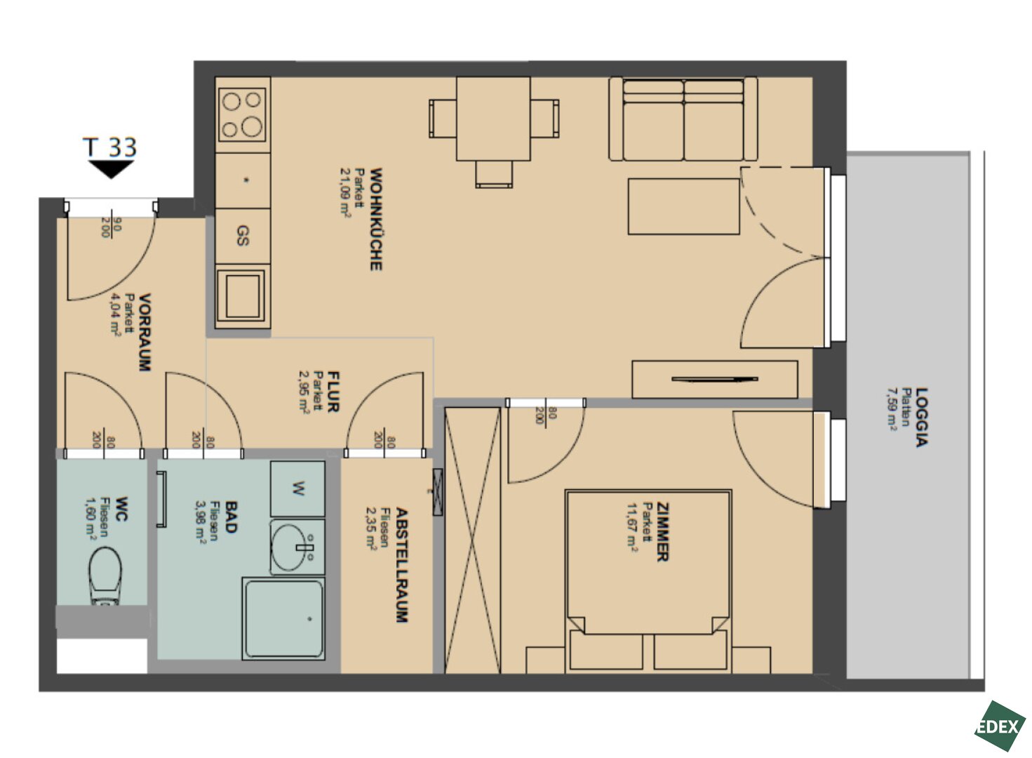 55,27 m2 Fläche -
