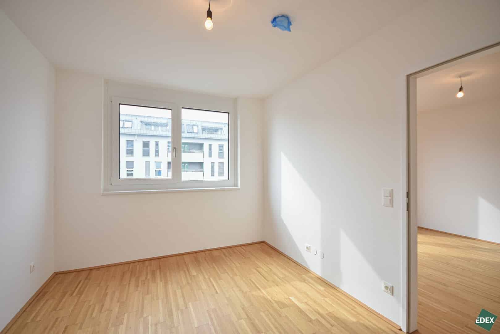 Zur Vermietung gelangt eine 2-Zimmer Wohnung in urbaner Atmosphäre. Die helle Wohnung verfügt über einen Vorraum, ein modernes Badezimmer mit Dusche und Waschmaschinenanschluss, ein separates WC, einen großzügigen Wohnbereich mit einer modernen, offenen Küche, einen Abstellraum, ein Schlafzimmer das in den ruhigen Hinterhof ausgerichtet ist, sowie über eine Loggia. Die 3-fach-verglasten Fenster sind mit elektrischer Außenbeschattung ausgestattet. Die Wohnräume sind mit schönem Parkettboden ausgestattet und die Nassräume mit Fliesen verlegt.