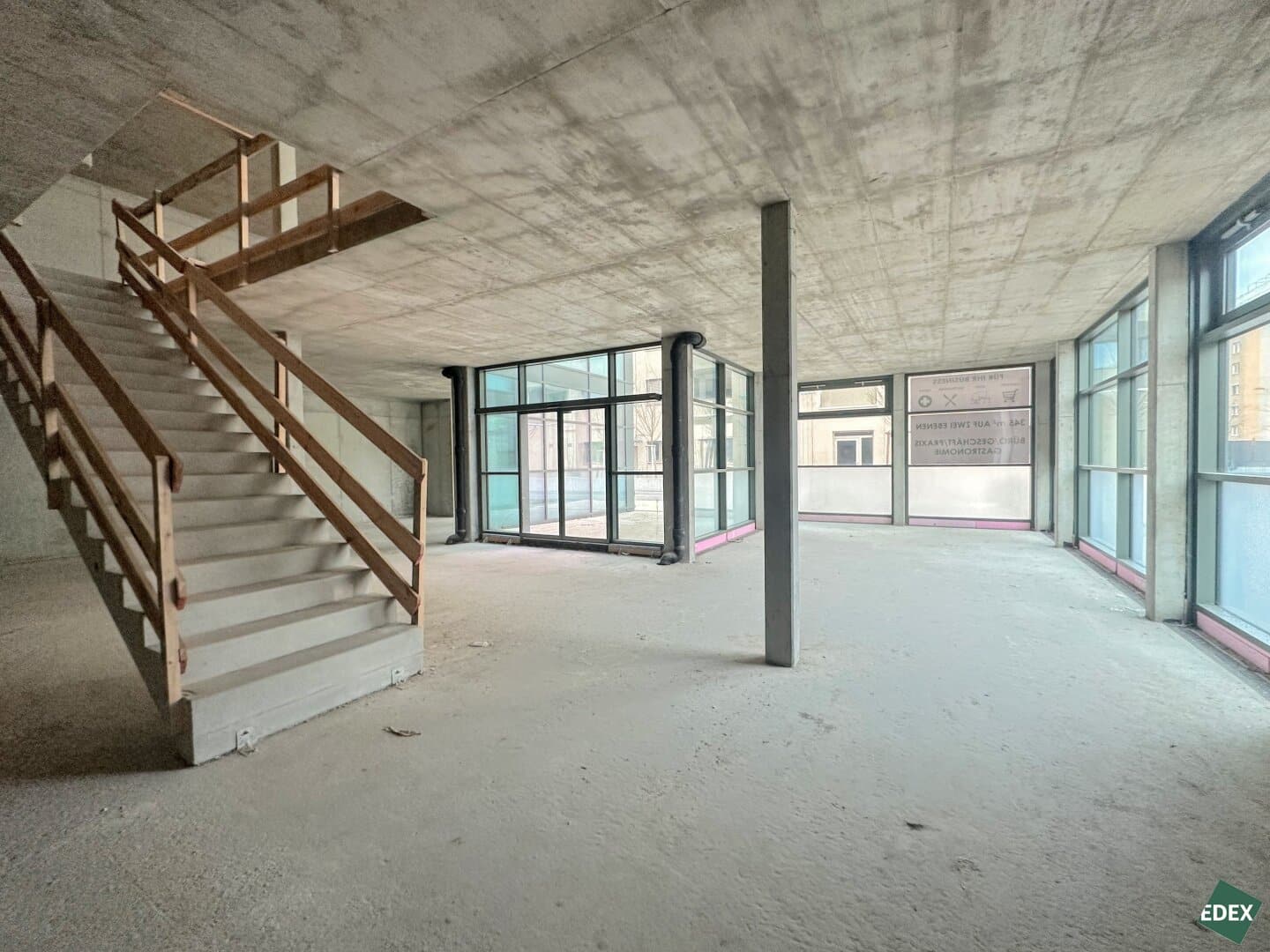 Die Geschäftsfläche erstreckt sich über zwei Etagen, die durch eine interne Treppe miteinander verbunden sind. Zudem bietet die Immobilie einen zusätzlichen, separaten Zugang über das Stiegenhaus, was zusätzliche Flexibilität bei der Nutzung der Räume schafft. Durch den Edelrohbau haben Sie die Möglichkeit, die Flächen ganz nach Ihren eigenen Anforderungen zu gestalten und so optimal an Ihre Bedürfnisse anzupassen. Die großen Schaufenster garantieren Helligkeit und gleichzeitig gute Sichtbarkeit.