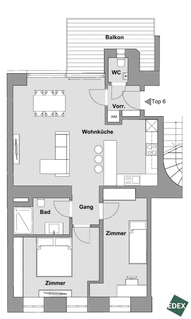 Die dargestellte Möblierung, einschließlich Küche und Begrünung, versteht sich ausschließlich als Gestaltungsvorschlag und ist nicht Bestandteil des Lieferumfangs oder des Vertrages. Die angegebenen Raum- und Wohnungsgrößen sowie Raumhöhen sind Richtwerte und können sich geringfügig ändern. Bauübliche Toleranzen bleiben vorbehalten. Sämtliche Maßangaben sind Circa-Werte und können abweichen. Für die Anfertigung von Einbaumöbeln sind die am Objekt genommenen Naturmaße verbindlich. Änderungen während der Bauausführung – insbesondere aufgrund behördlicher Auflagen sowie haustechnischer oder konstruktiver Erfordernisse – bleiben vorbehalten.