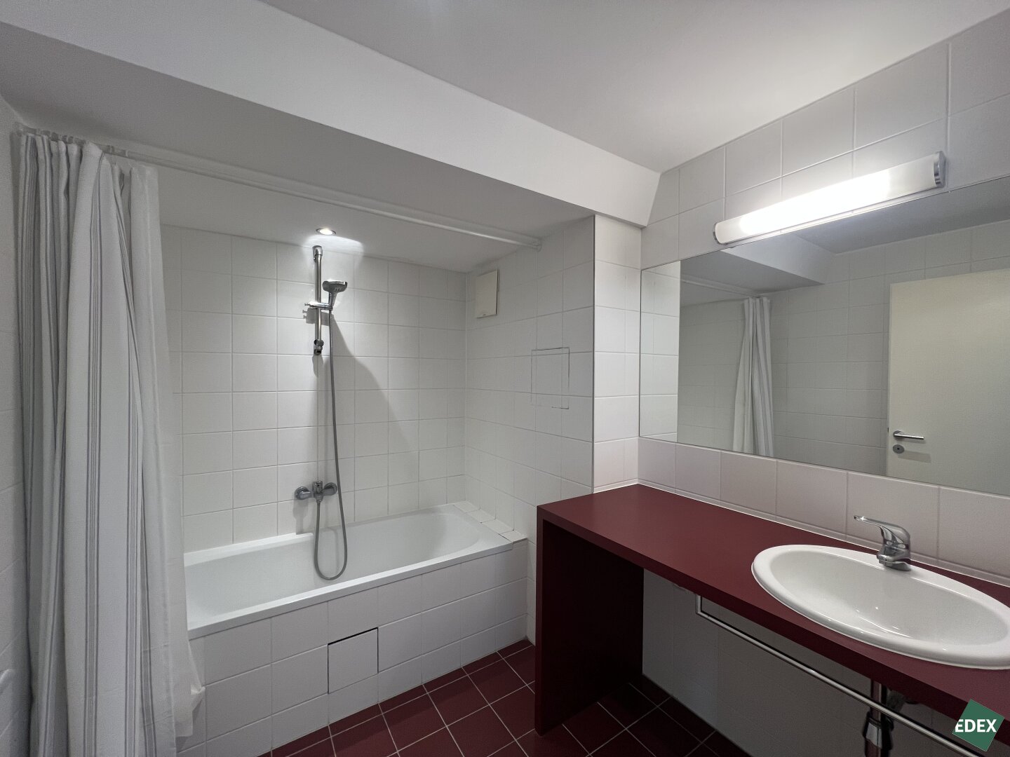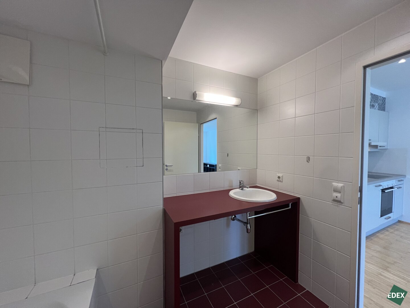 Badezimmer mit Badewanne, Waschbecken & Waschmaschinenanschluss