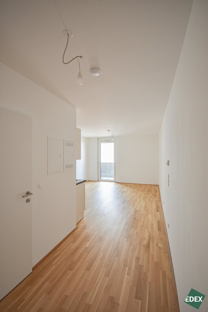 Ab sofort gelangt zur Vermietung eine 2-Zimmer Wohnung in urbaner Atmosphäre. Die helle Wohnung verfügt über einen Vorraum, ein modernes Badezimmer mit Dusche, Waschmaschinenanschluss und einem getrennten WC, einen Wohnbereich mit einer modernen, offenen Küche, sowie über einen Balkon und einem separaten Schlafzimmer. Die 3-fach-verglasten Fenster sind mit elektrischer Außenbeschattung ausgestattet. Die Wohnräume sind mit schönem Parkettboden ausgestattet und die Nassräume mit Fliesen verlegt.