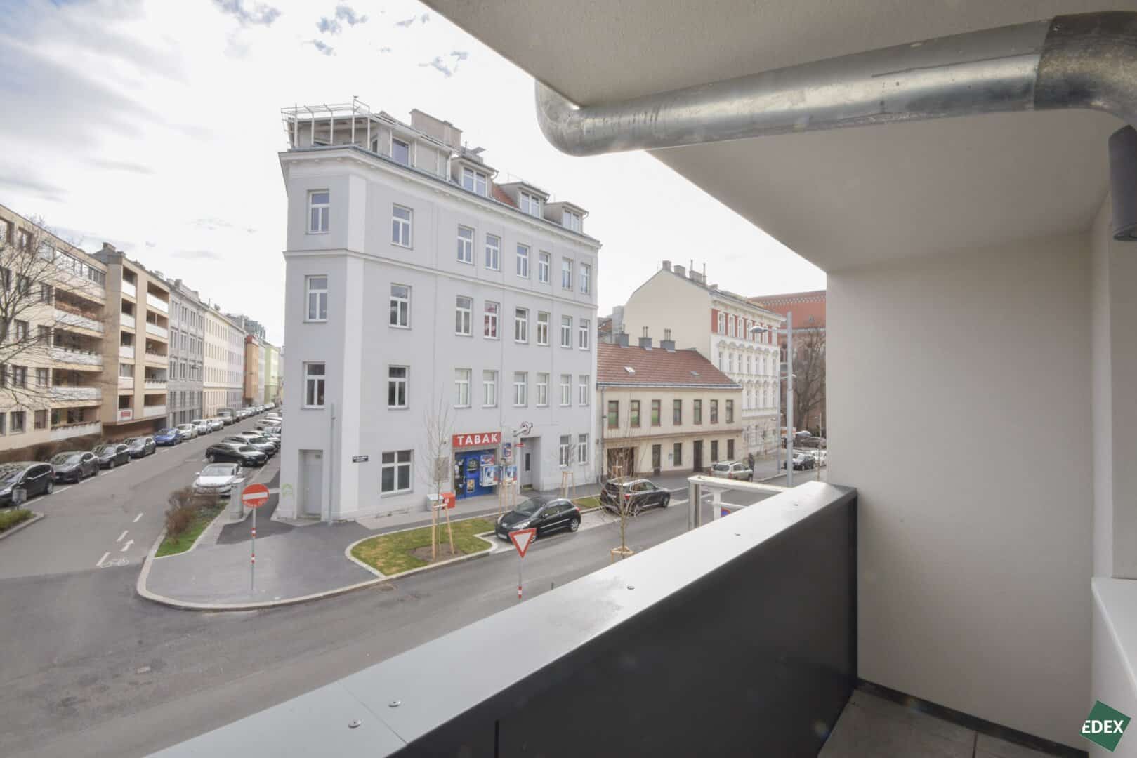 Zur Vermietung gelangt eine schöne 2-Zimmer-Wohnung in urbaner Atmosphäre. Die lichtdurchflutete Wohnung liegt straßenseitig im 1.Obergeschoß und verfügt über einen Vorraum, ein modernes Badezimmer, einen Abstellraum mit Waschmaschinenanschluss, ein separates WC, eine großzügige Wohnküche mit einer modernen, offenen Küche, ein Schlafzimmer, sowie eine Loggia. Der Außenbereich ist über das Wohnzimmer begehbar. Die Fenster sind mit einem außenliegenden Sonnenschutz versehen. Die Wohnräume sind mit hochwertigen Parkettböden und die Nassräume sind mit eleganten Fliesen ausgestattet.