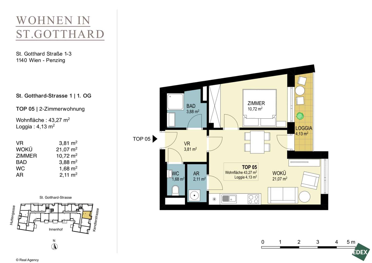 43,27 m2 Fläche -