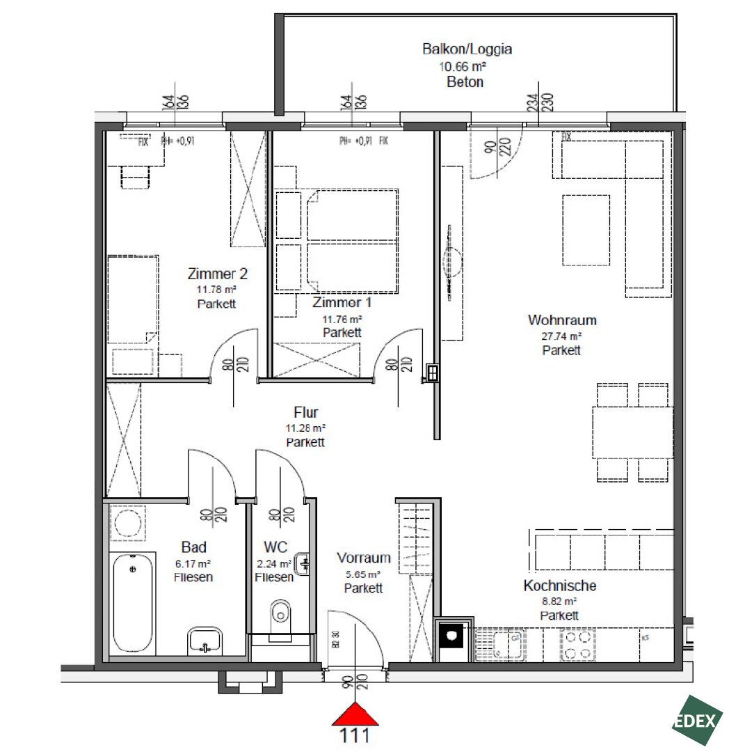 85,44 m2 Fläche -