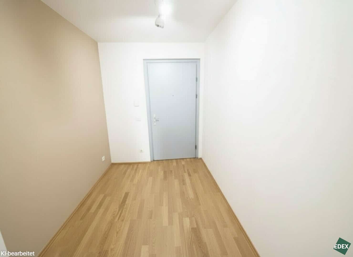 Beim Betreten der Wohnung gelangt man in den Vorraum, von dem aus sowohl das separate WC als auch das Badezimmer mit Badewanne, Waschbecken und Waschmaschinenanschluss erreichbar sind.