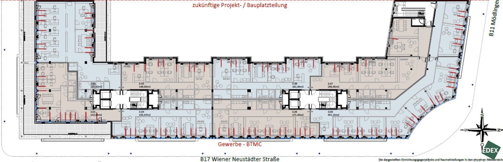 In diesem Bürohaus stehen ab Q3-2022 hochmoderne Einheiten (Erstbezug) von 142,95 m² bis 5.840,10 m² zur Verfügung. Die Flächen können in unterschiedlichen Kombinationen angemietet werden. Gegenüber der Badner Bahn Station „Wiener Neudorf“ und somit perfekt angebunden, entsteht aktuell ein hochwertiger Neubau. Das Objekt das durch höchste Flexibilität sowie seine ruhige und unaufdringliche Eleganz besticht, umfasst vier Obergeschosse mit insgesamt ca. 5.840,10 m² Büroflächen. Die Fertigstellung erfolgt im Q3-2022.